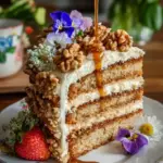 Mit jedem Stück, das du genießt, kommt die Vorstellung auf, dich an einem rustikalen Holztisch in einem kleinen Café in Neuengland zu befinden, wo die Luft nach Zimt und frisch gebackenem Brot duftet. Der Ahorn-Walnuss-Kuchen bringt eine wunderbare Balance zwischen Süße und Nussgeschmack, die dich unwiderstehlich anzieht. Egal, ob du ihn zu einer heißen Tasse Kaffee servierst oder mit Freunden bei einem gemütlichen Nachmittagskaffee teilst – dieser Kuchen hat das Potenzial, zum Star deines nächsten Backabenteuers zu werden.