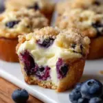 Fluffy blueberry cheesecake crumble muffins that melt in your mouth, featuring a crispy crumble topping and a creamy cheesecake center.