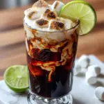 6. Dekoration: Garniere das Getränk mit einem Limettenkeil am Glasrand und einem zusätzlichen Drizzle aus geröstetem Marshmallow, falls gewünscht.