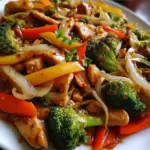A vibrant dish from Asian cuisine featuring tender chicken and crunchy vegetables, cooked in a flavorful soy sauce.