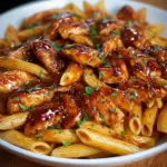 Eine einfache und köstliche Ein-Pfannen-Penne mit zartem Hühnchen in Honig-BBQ-Sauce, perfekt für geschäftige Wochentage.