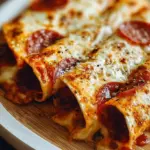 Käsegebackene Pizza-Wraps sind der Inbegriff von Komfortessen mit einem eleganten Twist, gefüllt mit geschmolzenem Käse und herzhaftem Pizzagenuss.