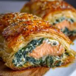 Ein köstliches Gericht aus Lachs, Spinat und Kräuterfrischkäse, umhüllt von knusprigem Blätterteig.