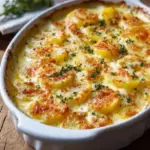 Ein köstlicher Auflauf aus zarten Mairübchen und Kartoffeln, aromatisiert mit Gewürzen und überbacken mit geschmolzenem Käse.
