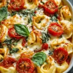 Ein köstlicher Tortellini-Auflauf mit frischen Tomaten und cremigem Mozzarella, perfekt für jede Gelegenheit.