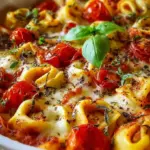 Ein köstlicher Tortelliniauflauf mit aromatischen Tomaten und zart schmelzendem Mozzarella – perfekt für gesellige Abende.
