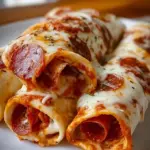 Leckere Tortilla-Pizza-Rollen, gefüllt mit frisch geschmolzenem Mozzarella und würzigen Peperonis, perfekt für jede Gelegenheit.
